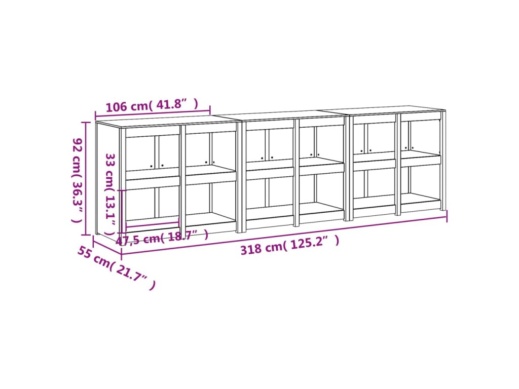 - Rozměry (každý kus): 106 x 55 x 92 cm (Š x H x V)
