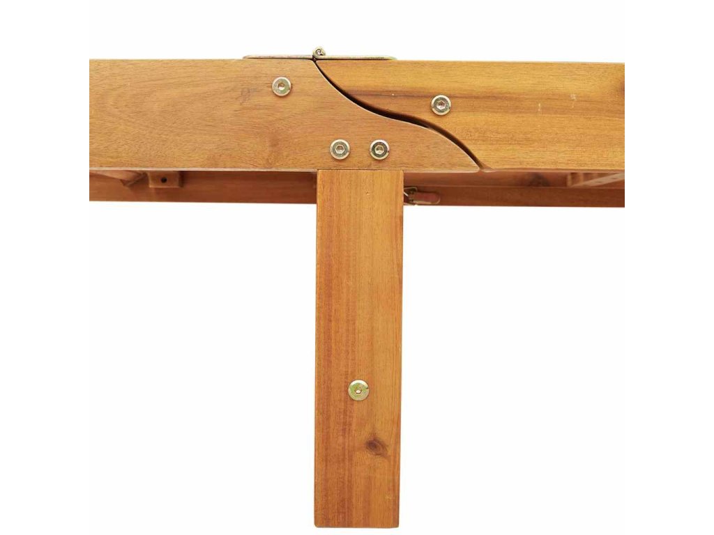 - Materiály: Tohle sluneční lehátko je z masivního akáciového dřeva, které je stabilní a silné. Kombinace s polyesterovými prvky zajišťuje pohodlí a krásný vzhled, takže je super pro venkovní aktivity.