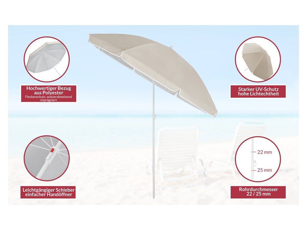 Slunečník Kypr 180 cm – béžový, UV 50+, naklápěcí