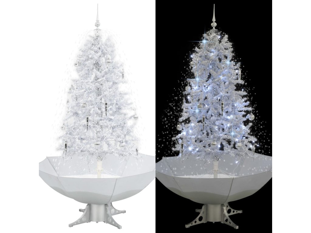 Sněžící vánoční stromeček s deštníkovým stojanem bílý 170 cm 284336