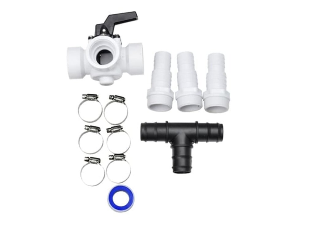 Dodávka obsahuje: 2 x solární panely, 2 x 1 x 3-cestný ventil, 2 x 1 x připojení k D-hadici, 2 x 3 x adaptér, 2 x 6 x sponu hadice, 2 x 1 x teflonovou pásku.