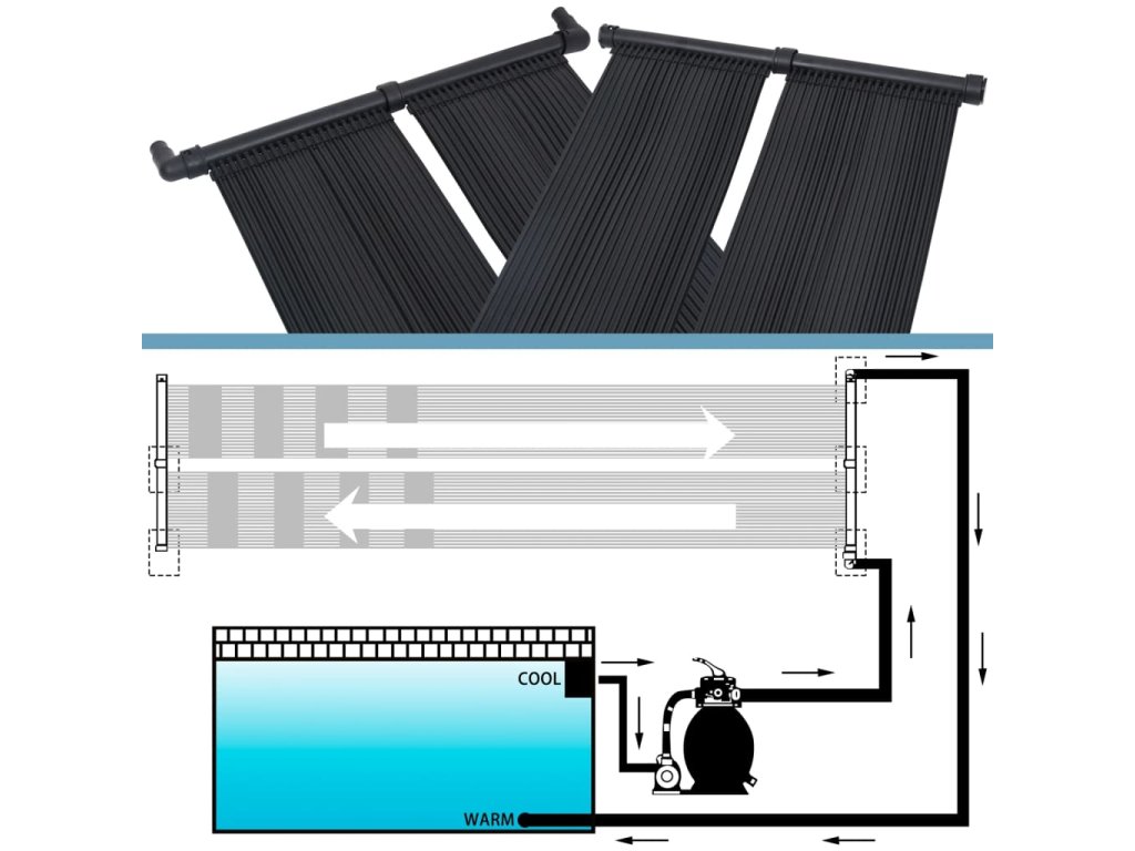 Tato sada solárního ohřívače bazénu absorbuje sluneční paprsky, přeměňuje je na teplo, a tím udržuje váš bazén příjemně teplý. Zvyšuje teplotu vody až o 10 stupňů.