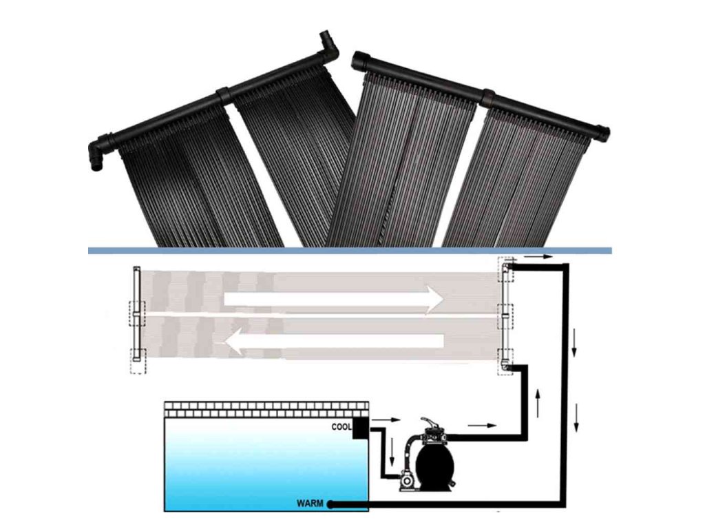 Tyto solární panely pohlcují sluneční paprsky, přeměňují je na teplo a udržují váš bazén příjemně teplý. Zvyšují teplotu vody v bazénu až o 10 stupňů. Bazénová voda koluje trubicemi solárního panelu, a vrací se do bazénu příjemně teplá.
