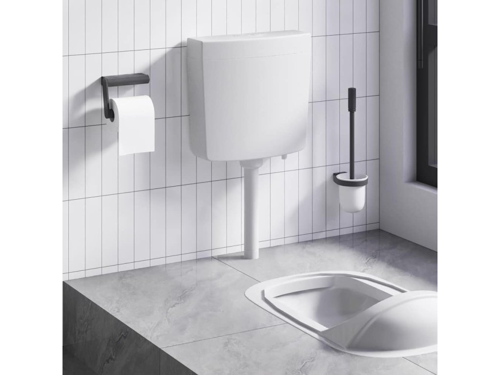 Tato dobře navržená splachovací nádržka se také snadno instaluje a veškeré montážní příslušenství je k ní přiloženo. Upozorňujeme, že otvor pro přívod vody je na spodní straně, nikoli na boku.