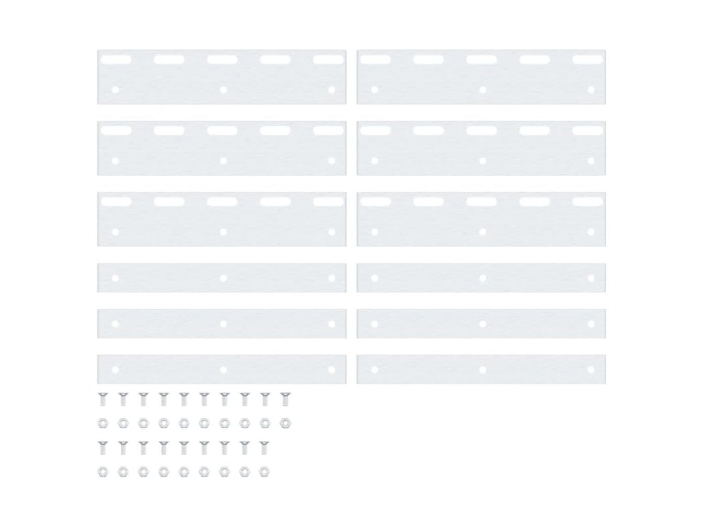Tyto spojovací destičky z nerezové oceli pomáhají správně a snadno instalovat pruhové závěsy.