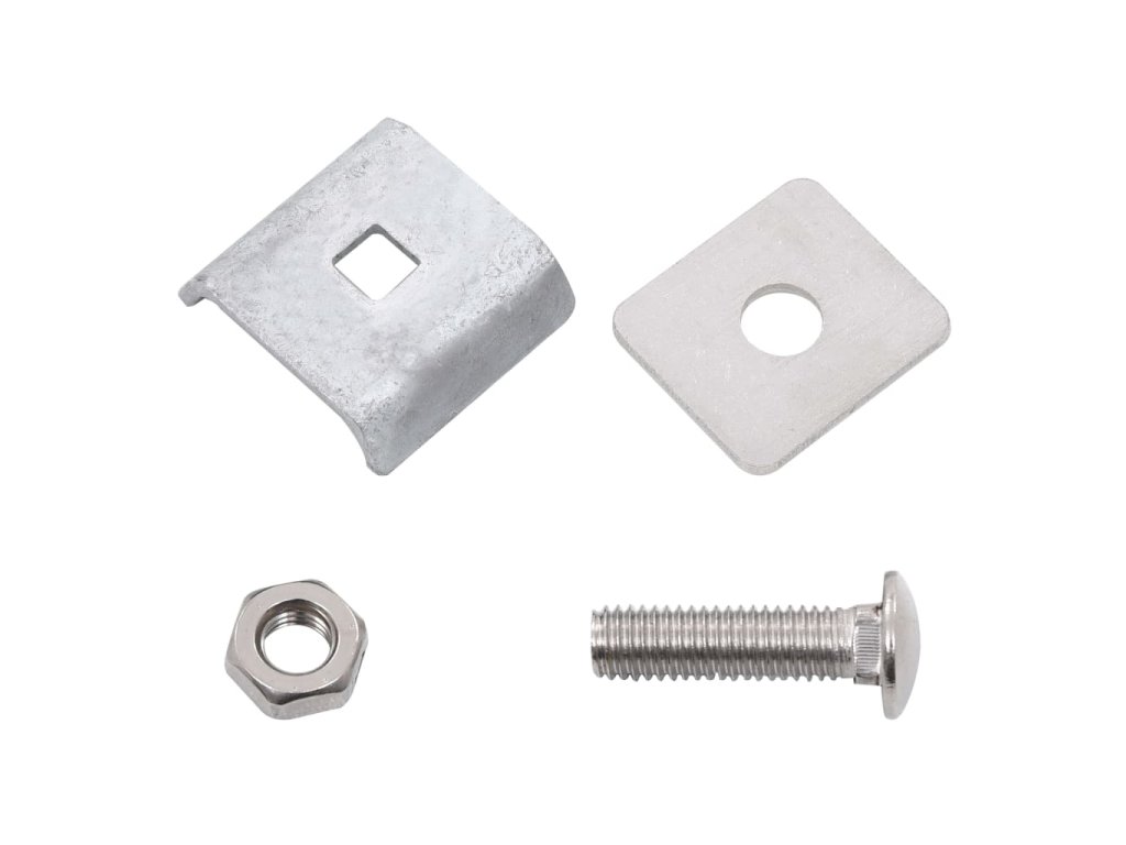 Obě destičky i šroub s maticí jsou vyrobené z oceli se žárovým pozinkováním. Tato sada je odolná vůči rzi a zaručuje dlouhodobou životnost.