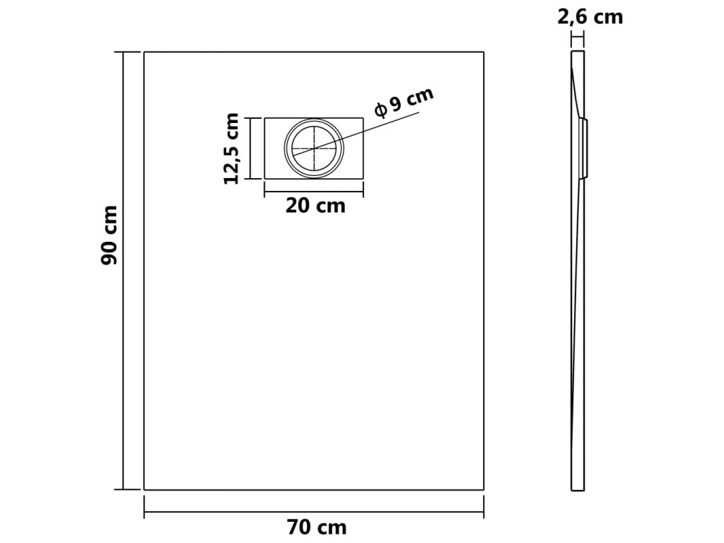 - Otvor pro standardní odtok s průměrem 9 cm (odtok není součástí balení)