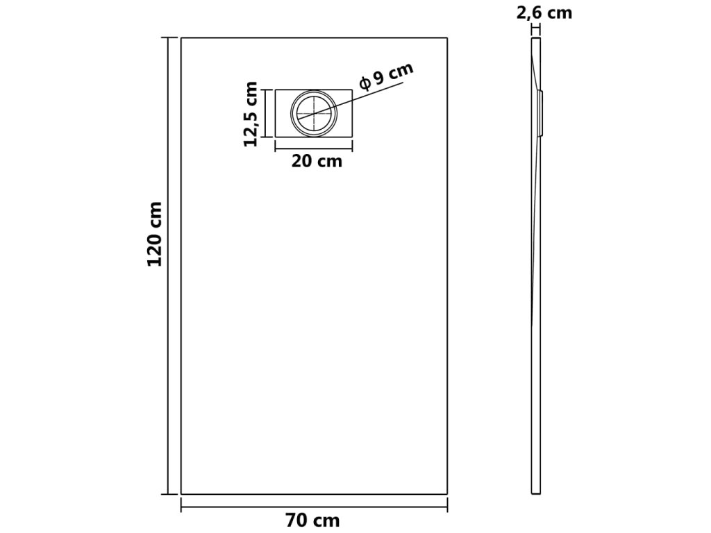 - Otvor pro standardní odtok s průměrem 9 cm (odtok není součástí balení)