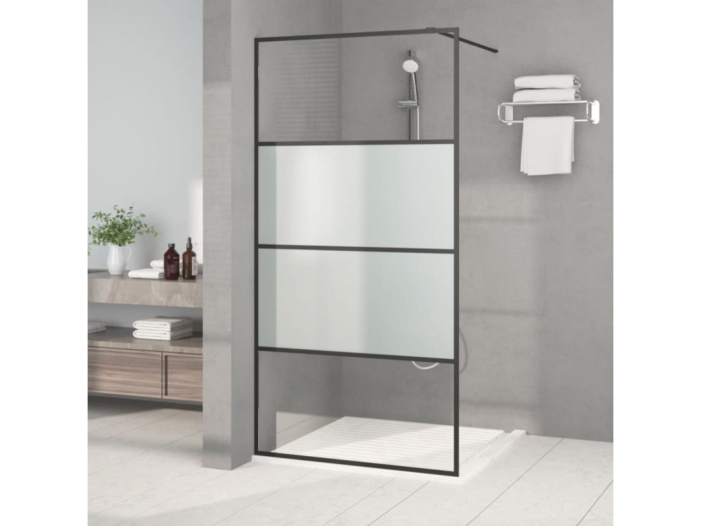 Sprchová zástěna walk-in černá 100x195 cm napůl mléčné ESG sklo 152127