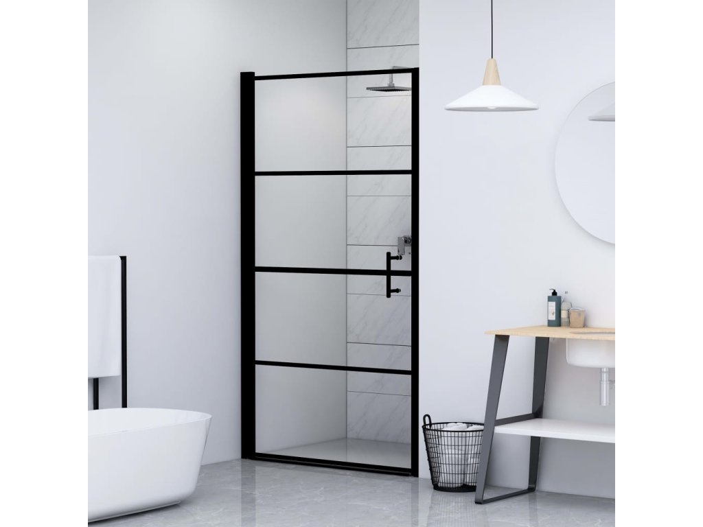 Sprchové dveře tvrzené sklo 91 x 195 cm černé 145672