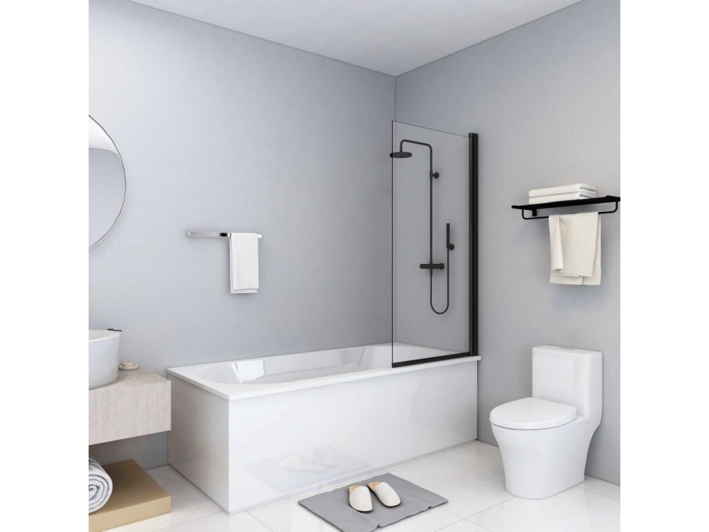 Černé profily a panely z ESG (jednovrstvé bezpečnostní sklo) podtrhují čistý vzhled sprchové kabiny, která tak do vaší koupelny vnese elegantní styl. Sestavení a montáž jsou snadné, potřebný montážní materiál je součástí balení.