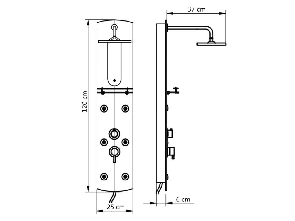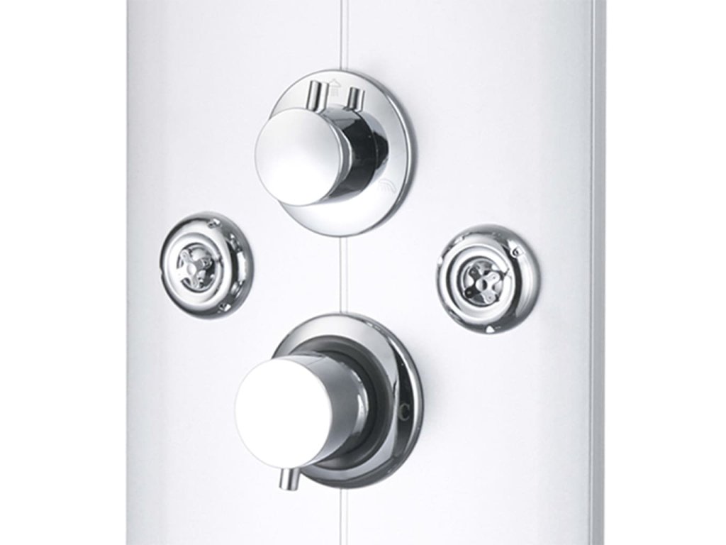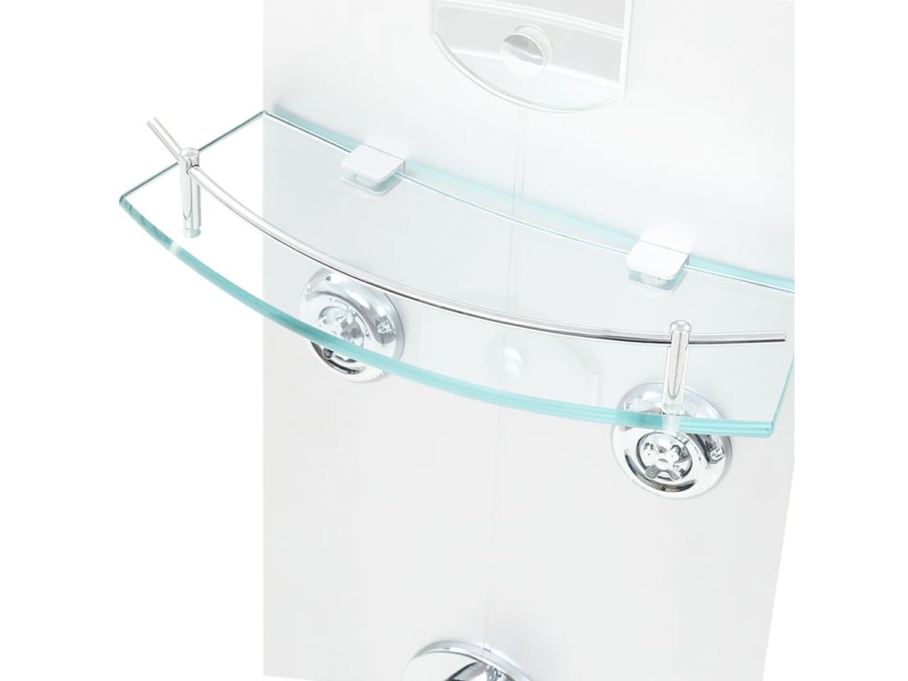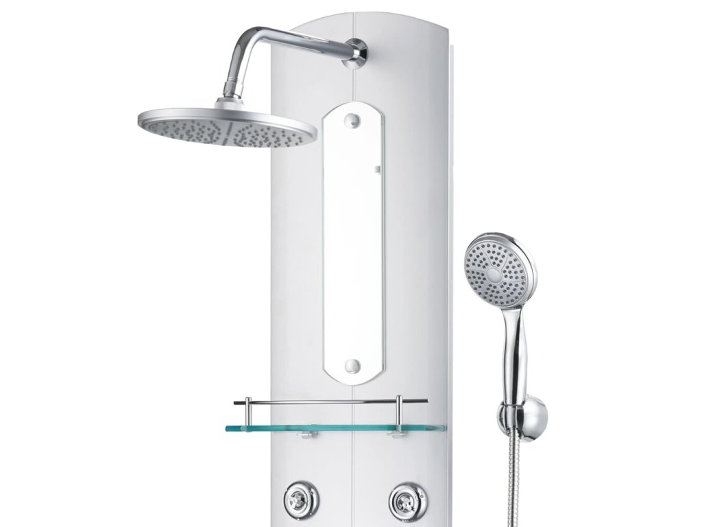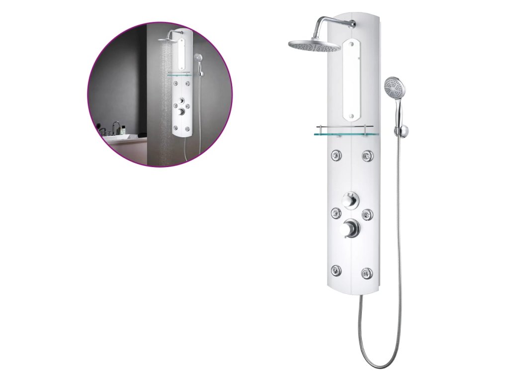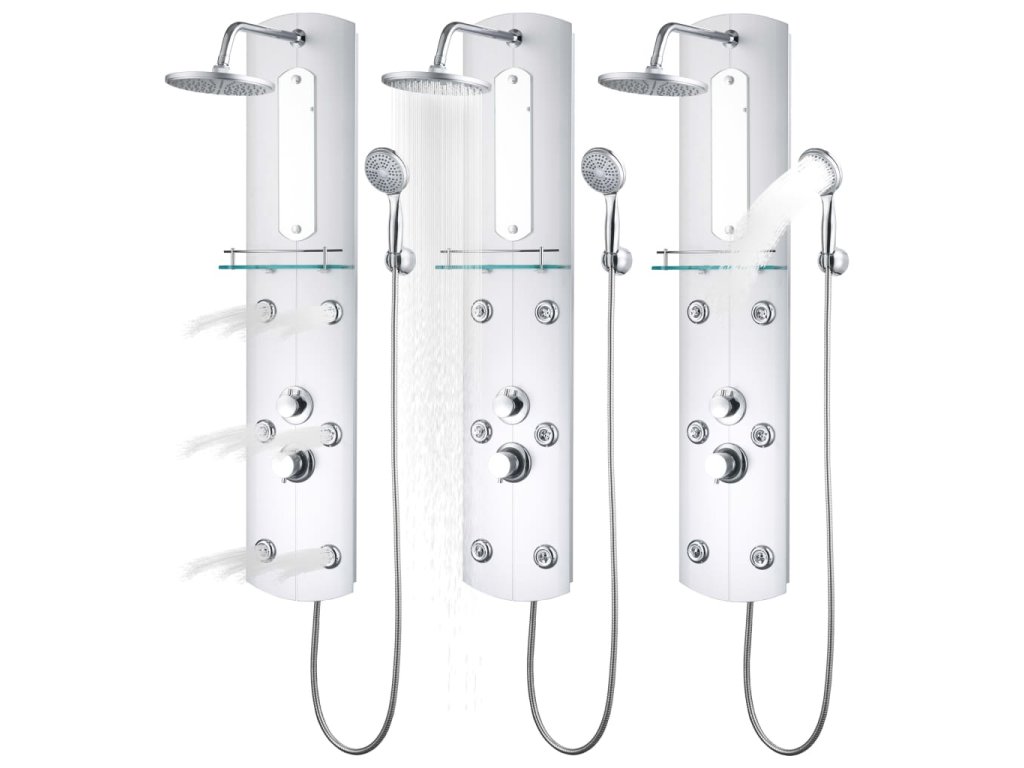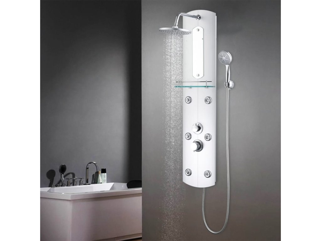 Hlavní část sprchového panelu je vyrobena z umělé hmoty, díky čemuž je lehká a dá se snadno přesouvat. Panel nabízí tři režimy sprchování: déšť, hydromasážní trysky a ruční sprchu, mezi nimiž se dá snadno přepínat. Na sprchovém panelu se rovněž nachází malé zrcadlo. Je tam také skleněná polička, kam si můžete položit potřeby ke sprchování. Silikonové trysky jsou odolné vůči usazování vodního kamene. Dopřejte si tu pravou relaxaci při každém sprchování a potěšte se krásou moderního stylu tohoto sprchového panelu! Montáž je snadná.