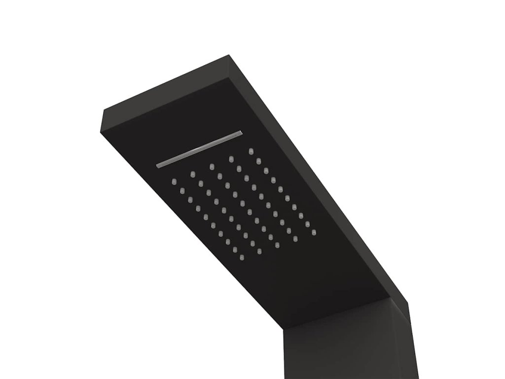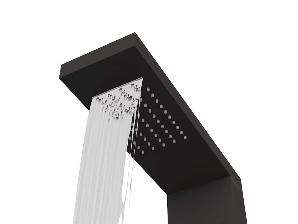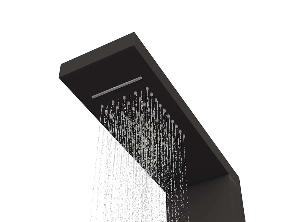 Sprchový panel je vyrobený z velmi odolného hliníku s krásným čtvercovým designem. Má čtyři funkce: tropický déšť, vodopád, hydromasážní trysky a ruční sprcha, které se snadno ovládají pomocí otočného přepínače.