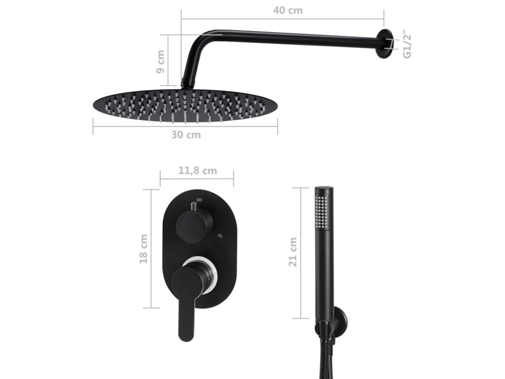 - Rozměry sprchového ramene: 40 x 2 x 2 cm (D x Š x V)