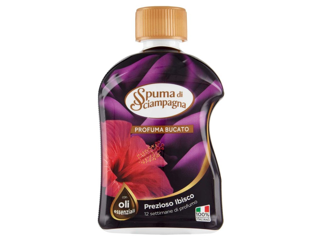 Díky jedinečnému složení Profuma Biancheria bude vaše oblečení nejen čisté, ale i voňavé jako čerstvé květiny Ibisco. Tato vůně je jemná a decentní, což jí dodává jedinečný charakter každého oblečení. Parfém na praní Spuma di Sciampagna je skvělý pro syntetické i přírodní tkaniny, a to bez ohledu na barvu či typ. Zajišťují nejen hloubkové čištění, ale také intenzivní a dlouhotrvající vůni.