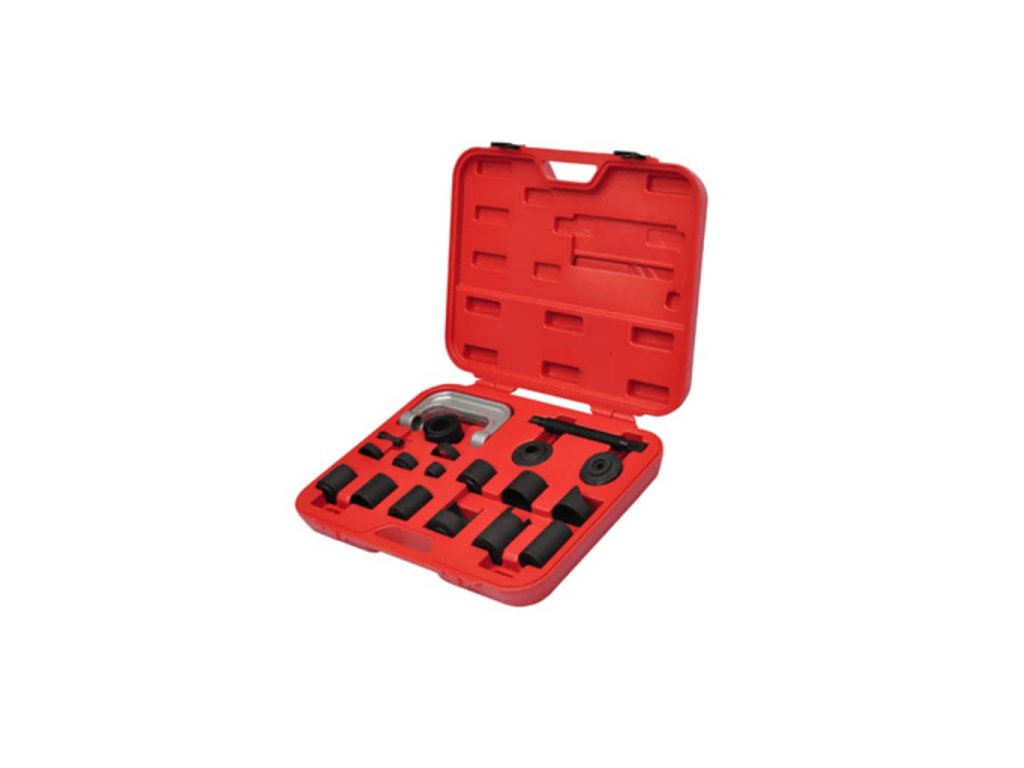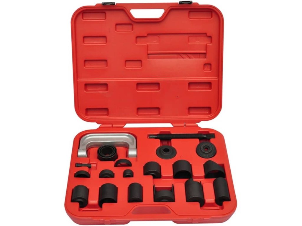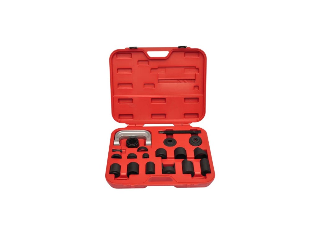 Sada obsahuje všechny adaptéry které budete potřebovat na montáž a demontáž horních a dolních kulových čepů, brzdových čelistí a kloubových spojů.