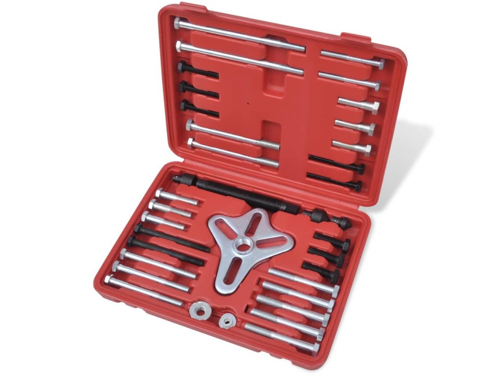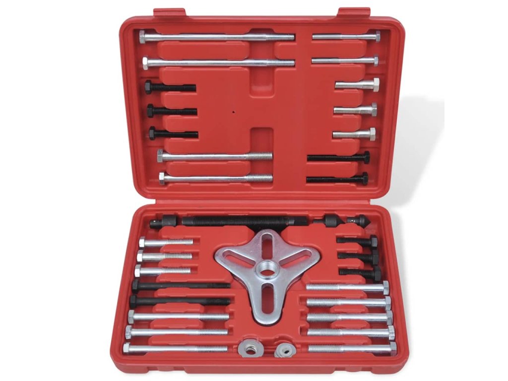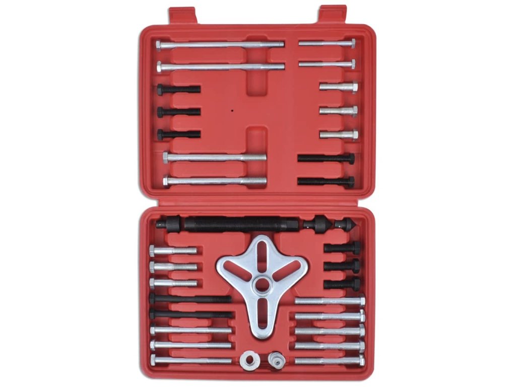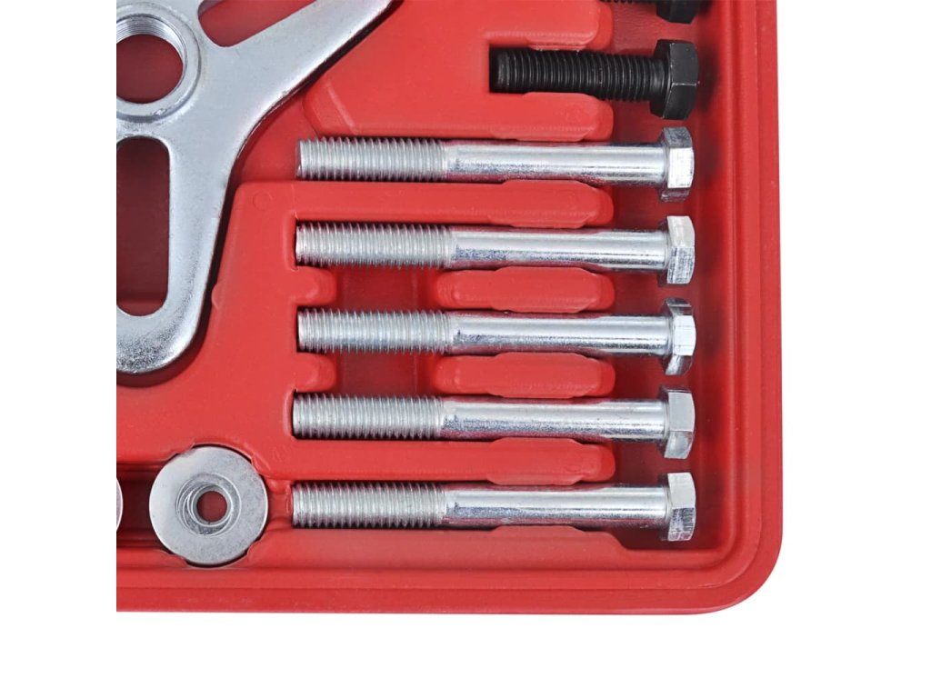 Tento stahovák tlumiče klikového hřídele je navržen pro odstraňování tlumiče klikového hřídele , ozubených řemenic , volantů a setrvačníků . Čtyři otvory na svěráku umožní použít 2 nebo 3 díry . Středová šroub má otočný čep , který zabrání poškození konce hřídele . Sada je vyrobena z kované , tepelně ošetřené oceli , takže je velmi trvanlivá . Sadu dodáváme v kufříku , aby se jednoduše skladovala a převážela .