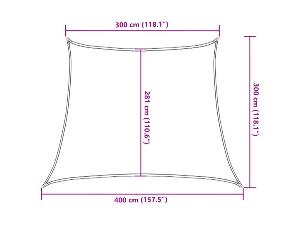 Sluneční plachta vyrobená ze 100% HDPE (vysokohustotní polyethylen) vás chrání před přímým slunečním zářením, umožňuje dostatečný průchod vzduchu a je propustná pro vodu. HDPE je speciálně upraven, takže je odolný proti plísním a UV záření. Slunečník se snadno sestavuje pomocí nerezových upevňovacích prvků na každém rohu a přiložených lanek.