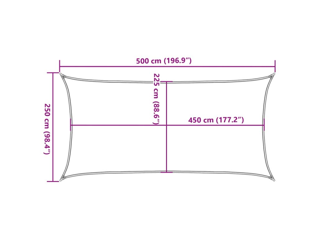 Sluneční plachta vyrobená ze 100% HDPE (vysokohustotní polyethylen) vás chrání před přímým slunečním zářením, umožňuje dostatečný průchod vzduchu a je propustná pro vodu. HDPE je speciálně upraven, takže je odolný proti plísním a UV záření. Slunečník se snadno sestavuje pomocí nerezových upevňovacích prvků na každém rohu a přiložených lanek.