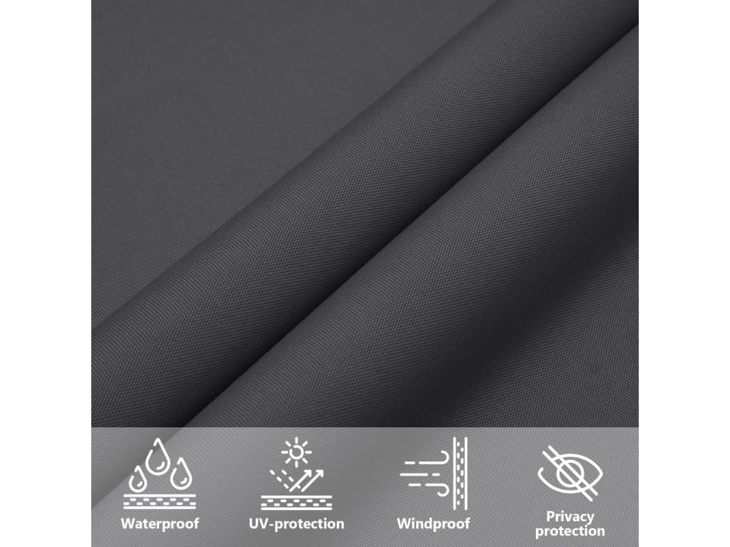 Tato plachta proti slunci je vyrobená z oxfordské látky potažené vrstvou PU, takže vás ochrání před přímým slunečním světlem a deštěm. Látka je speciálně ošetřena, je tedy odolná vůči plísni a UV záření.