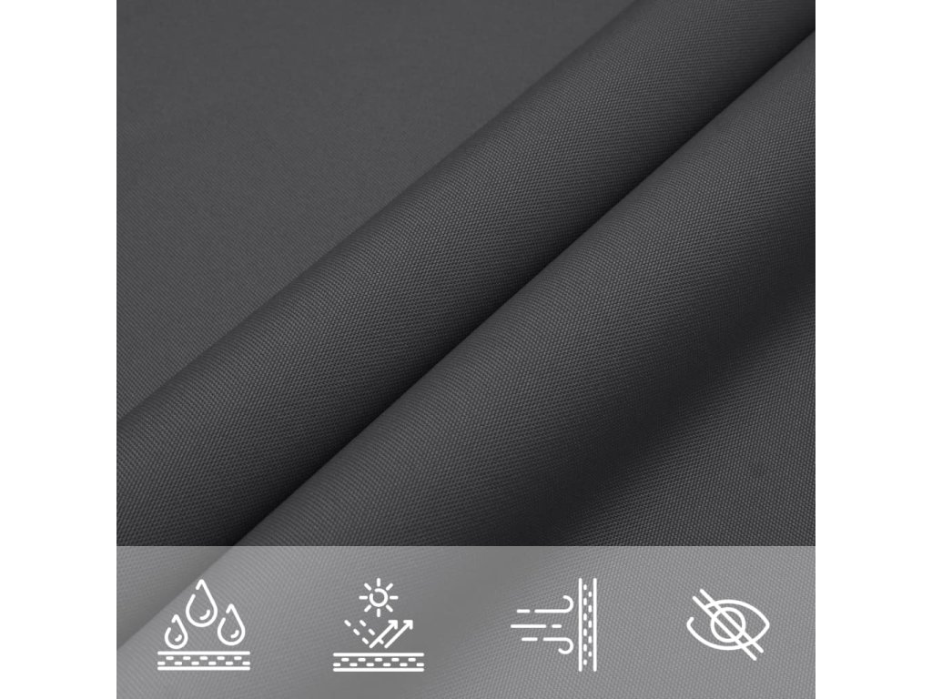 Tato plachta proti slunci je vyrobená z oxfordské látky potažené vrstvou PU, takže vás ochrání před přímým slunečním světlem a deštěm. Látka je speciálně ošetřena, je tedy odolná vůči plísni a UV záření.