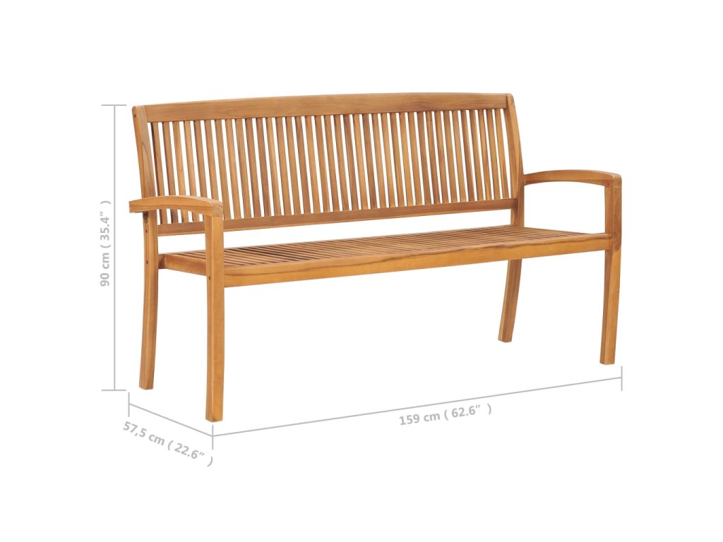 Stohovatelná zahradní lavice s poduškou 159 cm masivní teak 3063322