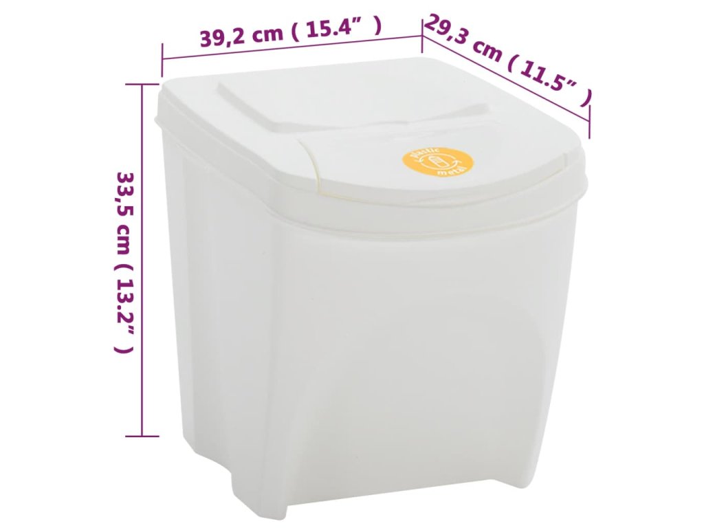 - Obsahuje štítky na třídění odpadu pro každý koš (sklo, papír, plast, organické látky, jiné)