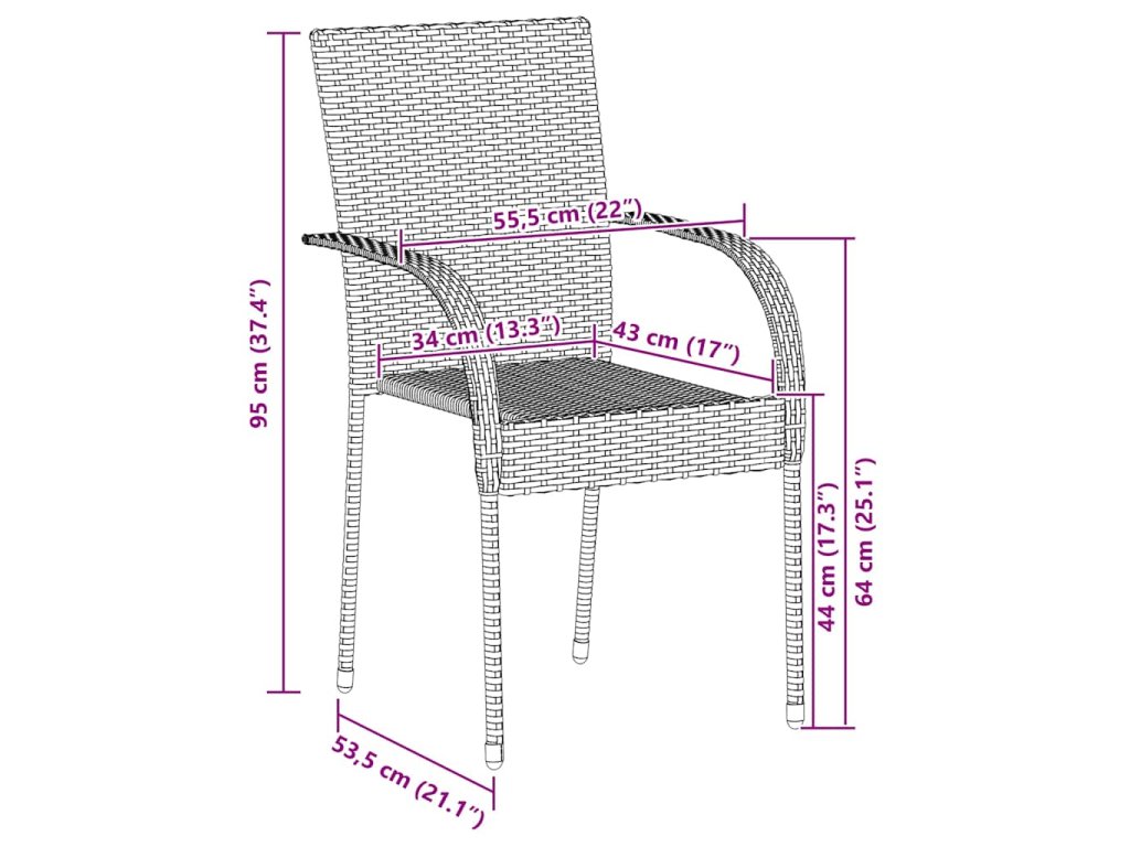 Stohovatelné zahradní židle jsou vyrobeny z voděodolného PE ratanu, takže se snadno čistí, jsou pevné a vhodné pro každodenní venkovní použití. Zahradní židle disponují ocelovým rámem s práškovým nástřikem, jenž zajišťuje jejich odolnost a stabilitu. Židle jsou lehké, a když je právě nepoužíváte, můžete je snadno stohovat a ušetřit tak místo.