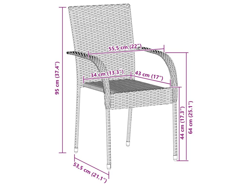 Stohovatelné zahradní židle jsou vyrobeny z voděodolného PE ratanu, takže se snadno čistí, jsou pevné a vhodné pro každodenní venkovní použití. Zahradní židle disponují ocelovým rámem s práškovým nástřikem, jenž zajišťuje jejich odolnost a stabilitu. Židle jsou lehké, a když je právě nepoužíváte, můžete je snadno stohovat a ušetřit tak místo.