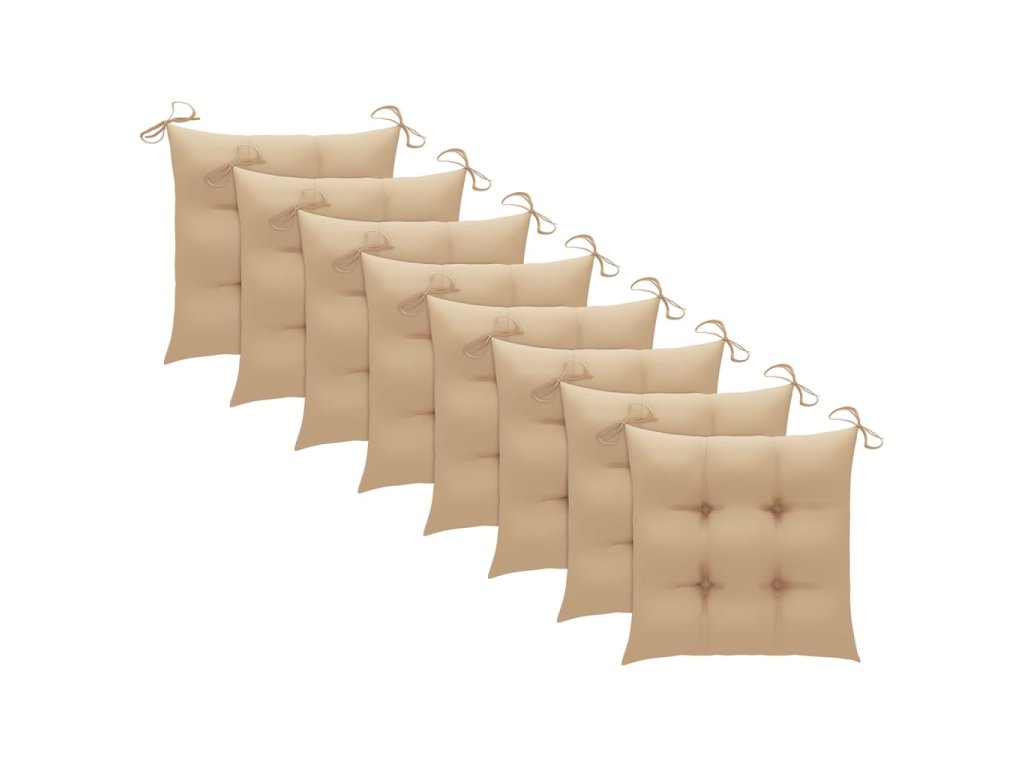 Nábytek je zhotovený z extrémně odolného teakového dřeva, které již prošlo procesem smršťování, bylo uměle vysušené a poté jemně a dohladka obroušené. Toto tvrdé dřevo je oceňované pro svou výjimečnou pevnost a klimatickou odolnost, a proto představuje zdaleka nejvhodnější materiál pro výrobu zahradního nábytku. Jedná se o skvělou volbu, pokud si chcete pořídit zahradní vybavení, které vám vydrží sloužit dlouhá léta. K údržbě a čištění vám postačí navlhčený hadřík. Jídelní židle lze navíc stohovat, když je zrovna nepoužíváte, aby vám zbytečně nezabíraly místo. O komfort se vám postarají přiložené podušky. Každá z nich je opatřená 2 páry šňůrek, za které ji k židli můžete pevně přivázat.