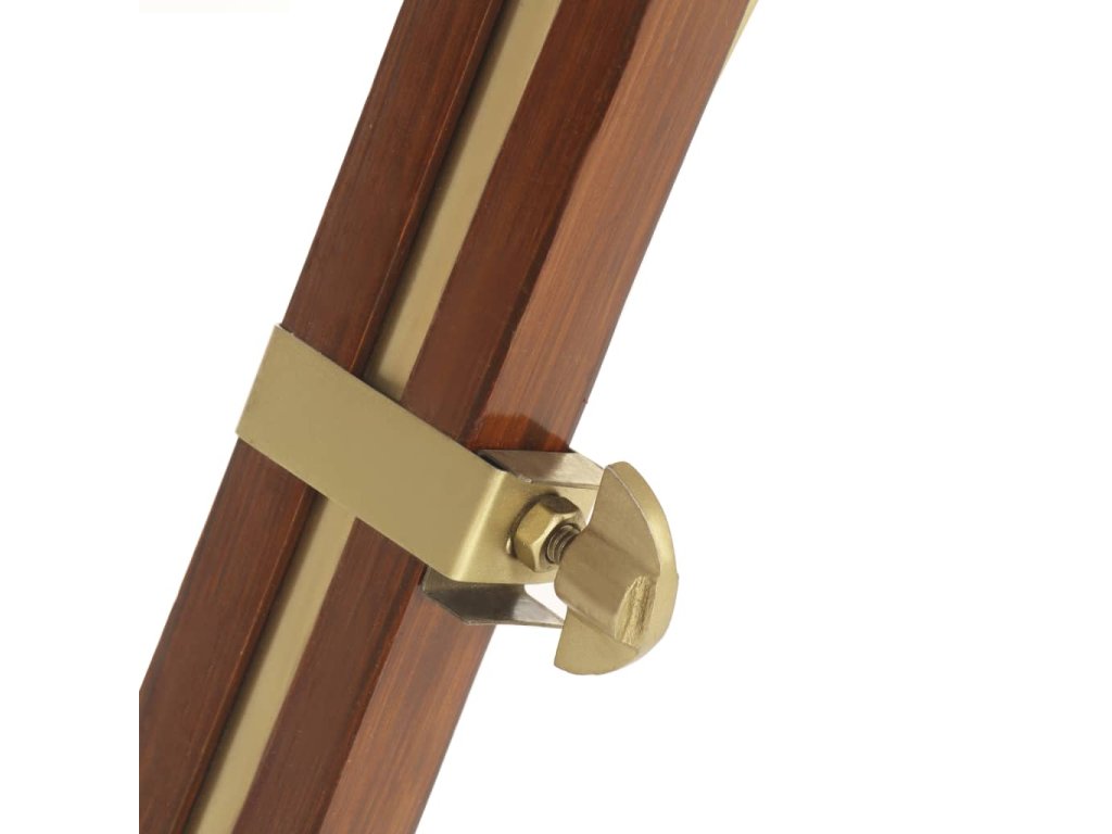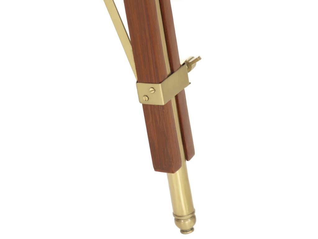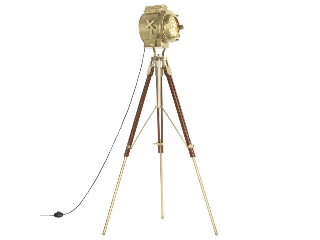 Sklopné otočné ocelové stínítko s mosazným povrchem šíří teplé a atmosférické světlo. Robustní nohy jsou vyrobené z masivního mangovníkového dřeva s hnědým povrchem a jsou velmi stabilní a bezpečné. Výšku svítidla lze podle potřeby upravit od 137 do 193 cm. Sestavení lampy Hollywood je snadné.