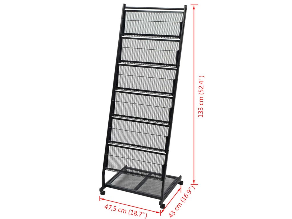 Šest velkých přihrádek nabízí dostatek prostoru pro vystavení brožur A4, knih nebo časopisů vedle sebe. Stojanem je snadné pohybovat, protože má kolečka. Díky modernímu designu se hodí do téměř jakéhokoliv interiéru. Umístěte stojan do své kanceláře, čekárny, obývacího pokoje nebo ložnice.