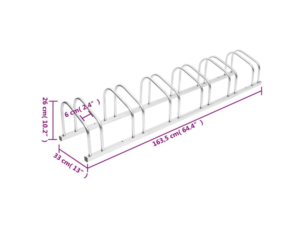 Tento stojan na kola z pozinkované oceli je vhodným řešením pro uložení jízdních kol pro rodiny nebo malé podniky.