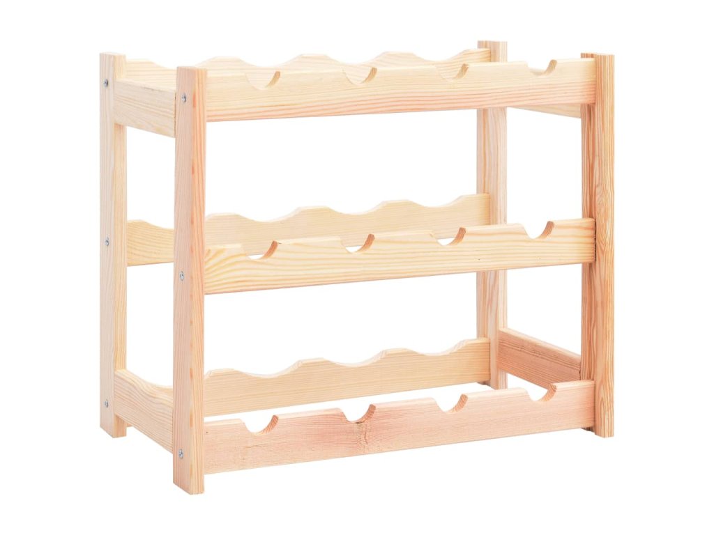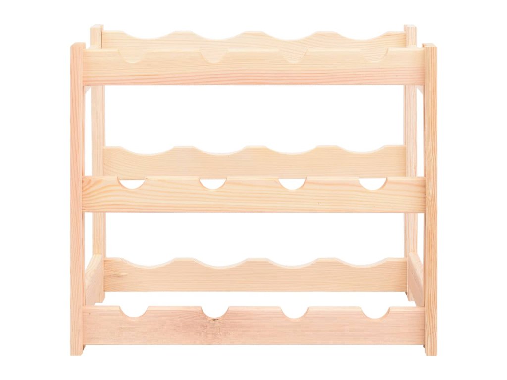 Do těchto polic na víno můžete uložit až 12 lahví. Jsou vyrobené z borového dřeva, a tudíž extrémně odolné. Můžete jim ponechat jejich přirozenou barvu nebo přidat vrstvu nátěru či jiné povrchové úpravy ve vaší oblíbené barvě. Potřebné montážní díly jsou součástí balení, sestavení domácí vinotéky je tedy snadné.