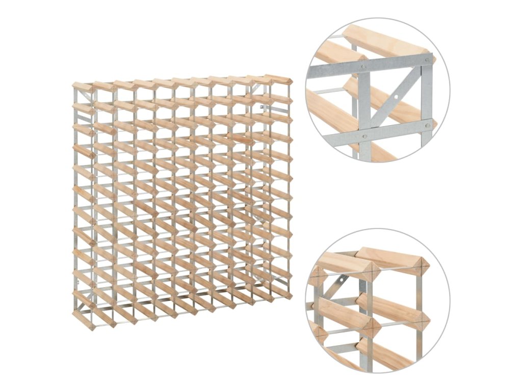 Stojan na víno pojme až 120 lahví vína. Jeho jednoduchý a úhledný design vnese do vaší domácnosti rustikální šarm. Výborně se také hodí jako dárek pro přátele či známé, kteří milují víno. Jelikož je vyrobený z pozinkované oceli a masivního dřeva, je mimořádně odolný! Sestavení stojanu je snadné, montážní materiály jsou totiž součástí balení.