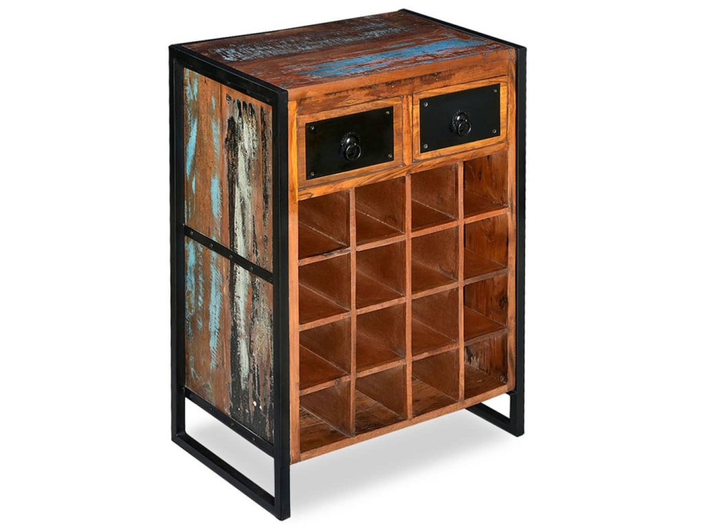 Tato skříňka na víno je vyrobená z recyklovaného dřeva, které je nejen pevné a odolné, ale také krásně vypadá. Recyklované dřevo má charakteristiky různých dřevin, jako jsou teak, mangovník, akácie a další. Každý jednotlivý kus nábytku je jedinečný a lehce odlišný od ostatních. Známky opotřebení a zřetelná kresba dřeva zaručují unikátní vzhled každého stojanu a přispívají k jejich okouzlujícímu vintage stylu. Stojan na víno je celý ručně dělaný a každá fáze jeho výroby byla provedená s největší pečlivostí, ať už se jedná o leštění, natírání anebo lakování. Nábytek je už smontovaný, další montáž tedy není třeba.