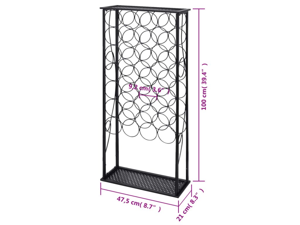 Tento samostatně stojící stojan na víno bude vynikat, ať už ho umístíte kamkoliv. Tento stojan na víno, vyrobený z tepaného železa, je plně ošetřený práškovým nástřikem, takže vám nezrezaví a bude sloužit i dalším generacím!