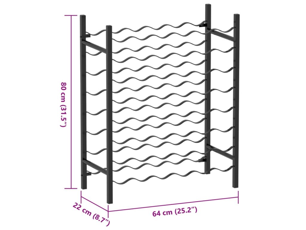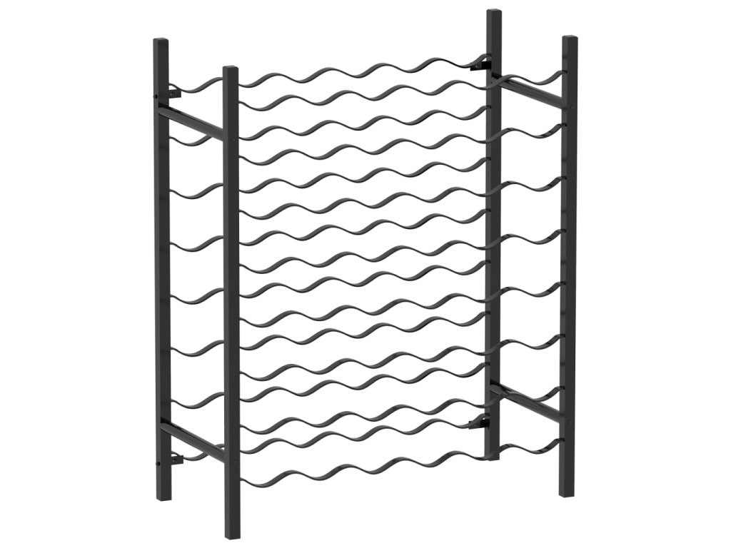 Tento stojan na víno pojme až 48 lahví vína. Je vyrobený z práškově lakovaného kovu, který se snadno udržuje a zaručuje dlouhou životnost. Je to skvělý dárek pro vaše blízké a přátele, kteří jsou znalci a milovníky dobrého vína. Tento stojan také umožňuje stohovat lahve vína na sebe. Sestavení je snadné.