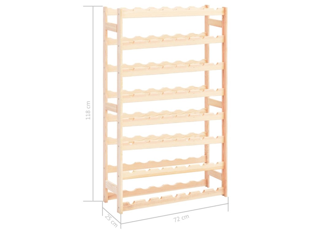 Do těchto polic na víno můžete uložit až 56 lahví. Jsou vyrobené z borového dřeva, a tudíž extrémně odolné. Můžete jim ponechat jejich přirozenou barvu nebo přidat vrstvu nátěru či jiné povrchové úpravy ve vaší oblíbené barvě. Potřebné montážní díly jsou součástí balení, sestavení domácí vinotéky je tedy snadné.