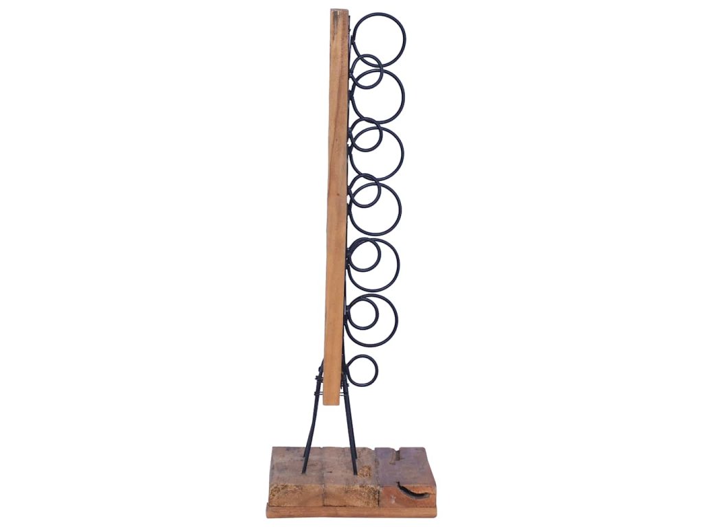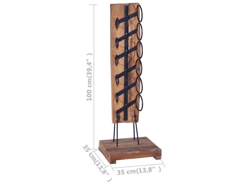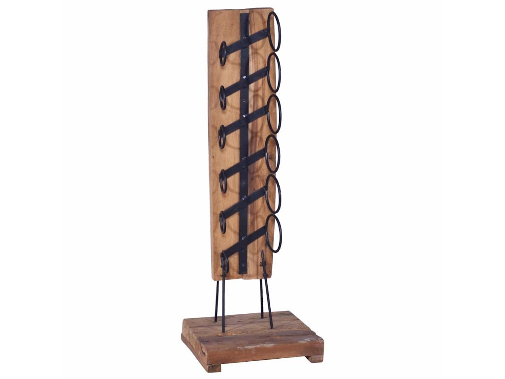 Tento podlahový stojan na láhve je vyrobený z vybraného teakového dřeva s velmi stabilní základnou. Železná tyč a držáky spolehlivě udrží vaše lahve. Kombinace přírodního dřeva a kovu zapůsobí svým retro šarmem. Pojme 6 lahví vína standardní velikosti a krásně se vyjímá v každé kuchyni nebo obývacím pokoji.