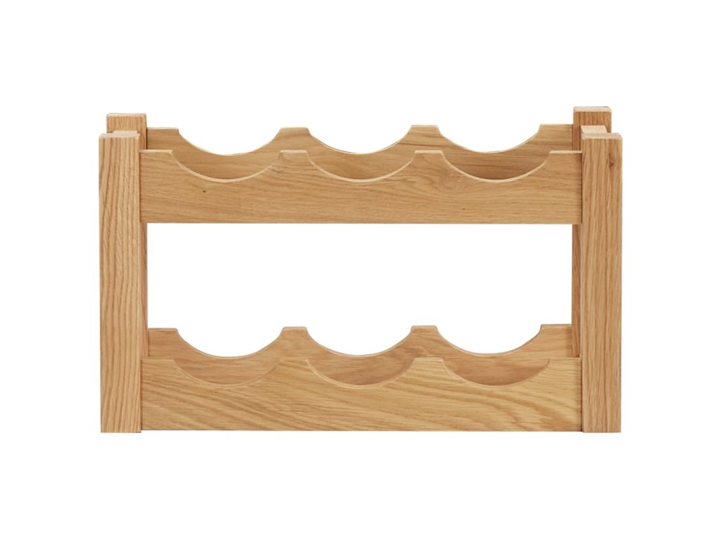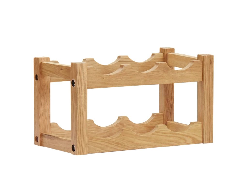 Stojan na víno pojme až 6 lahví vína. Je vyrobený z masivního dubového dřeva s přírodním povrchem, je tedy celkem stabilní a nenáročný na údržbu. Stojí samostatně, takže ho můžete umístit, kam se vám zlíbí. Jedná se o skvělý dárek pro vaše známé a přátele, kteří milují víno. Upozorňujeme, že láhve s vínem nejsou součástí balení.