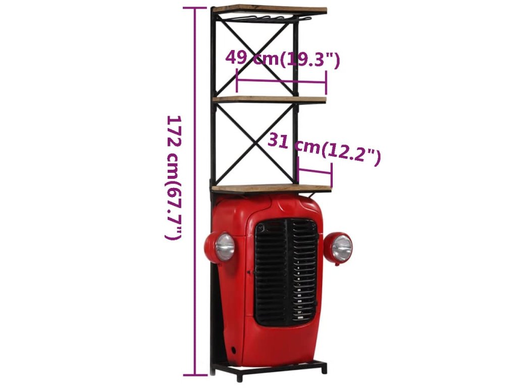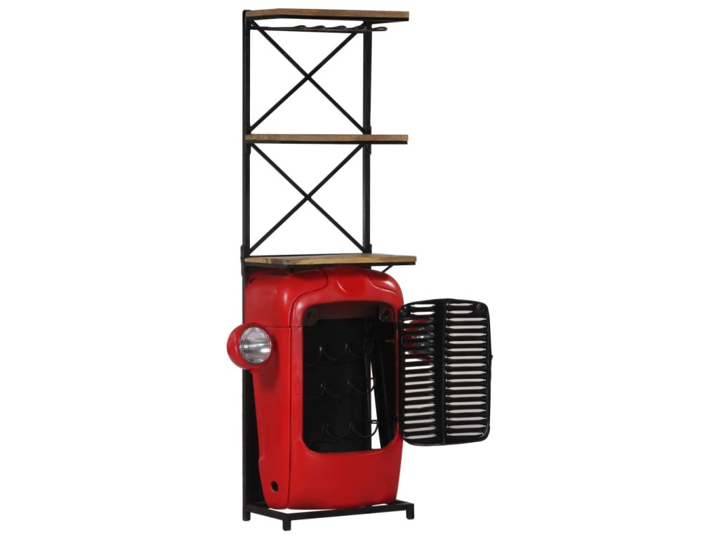 Domácí vinotéka je vyrobena z masivního mangovníku, což je tvrdé dřevo s bohatou kresbou. Hrubé mangovníkové dřevo dokáže nejen unést velkou váhu, ale také výborně odolává zubu času. Tato skříňka s designem traktoru disponuje 2 policemi a 9 držáky na láhve, takže nabízí dostatek prostoru pro skladování vašich vín i dalšího příslušenství.
