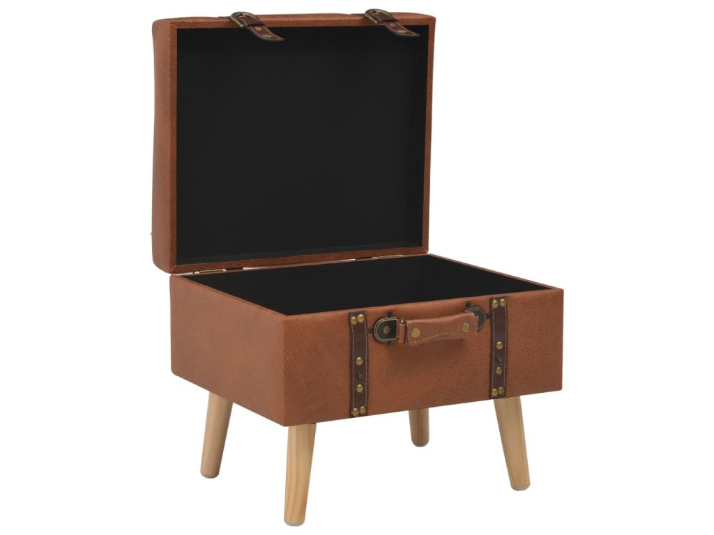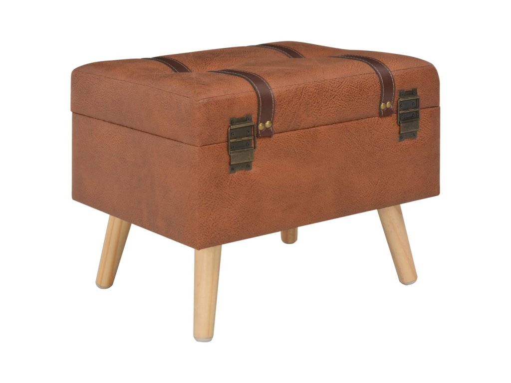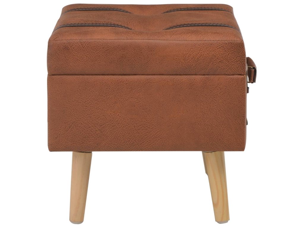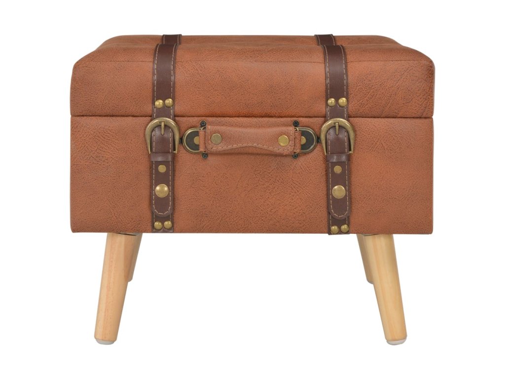 Stolička je čalouněná umělou kůží a polstrovaná molitanem pro zvýšené pohodlí. Nohy z masivního dřeva nejen zaručují, že je podnožka stabilní a odolná, ale zároveň jí také propůjčují elegantní šarm. Prostor pod sedákem navíc snadno využijete jako dodatečný úložný prostor.