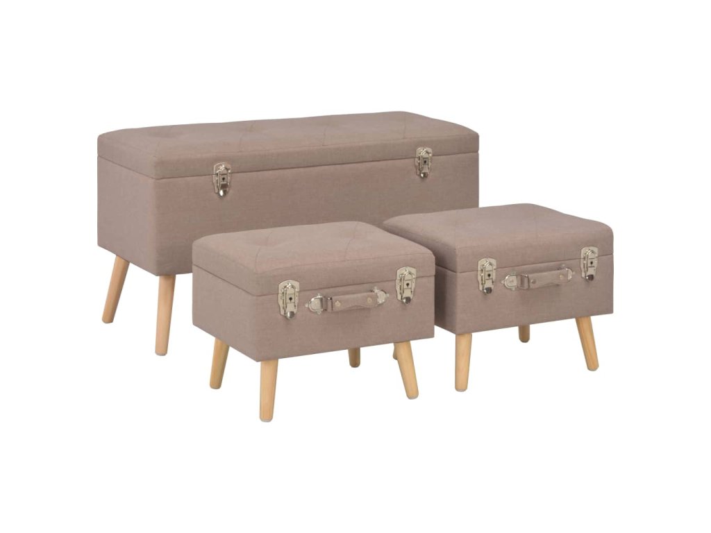 Stoličky s úložným prostorem 3 ks hnědé textil 247525
