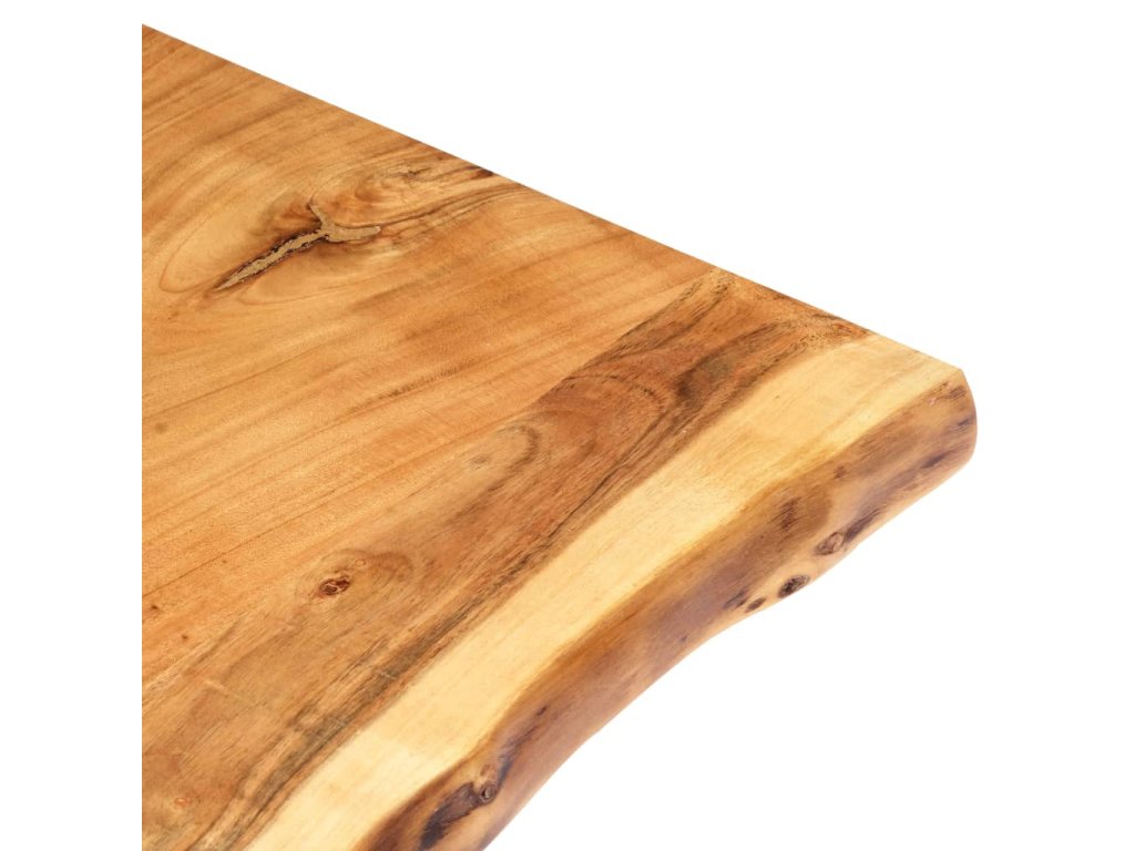 Kuchyňská stolní deska je vyrobená z masivní akácie, což je tropické tvrdé dřevo, které je husté a odolné a má dlouhou životnost. Navíc bylo vyleštěné, natřené a nalakované, takže je dobře zapouzdřené, a tudíž chráněné před vlhkostí. Deska je zhotovená z kmene stromu a kopíruje jeho přírodní hrany, a tak k vám domů přinese krásu živého dřeva.