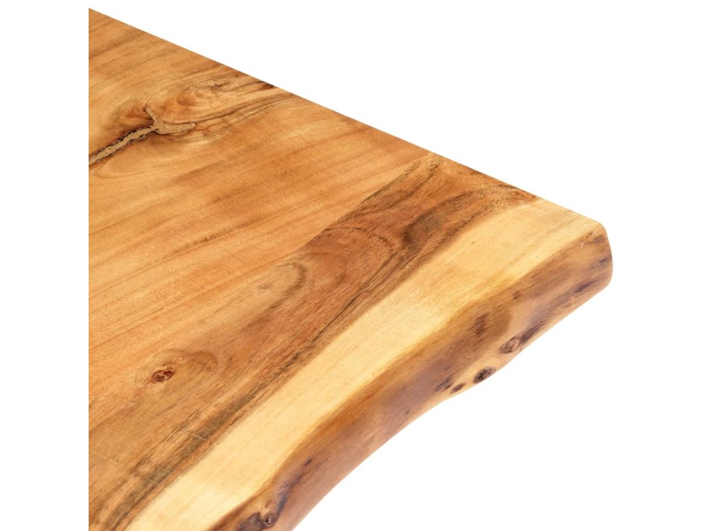 Kuchyňská stolní deska je vyrobená z masivní akácie, což je tropické tvrdé dřevo, které je husté a odolné a má dlouhou životnost. Navíc bylo vyleštěné, natřené a nalakované, takže je dobře zapouzdřené, a tudíž chráněné před vlhkostí. Deska je zhotovená z kmene stromu a kopíruje jeho přírodní hrany, a tak k vám domů přinese krásu živého dřeva.