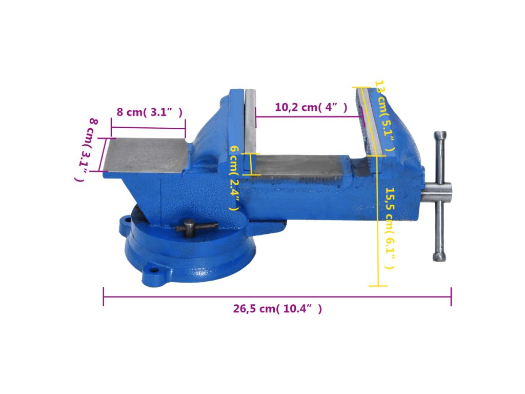 - Všestranné použití: Stolní svěrák je nepostradatelným nástrojem v každé dílně, továrně nebo kůlně, je vhodný k broušení, vrtání, děrování, svařování, montáži nebo práci s malými plechovými díly při různých DIY činnostech.