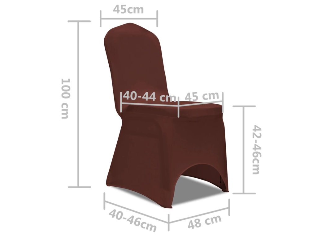 Hodí se téměř pro všechny typy židlí o celkové výšce do 100 cm. Tyto potahy na židle jsou ušité ze strečové látky, takže je můžete jednoduše natáhnout na židle a zachytit za jejich nohy. Díky 10% obsahu spandexu potahy vždycky padnou a je zajištěna jejich bezpečná přilnavost.