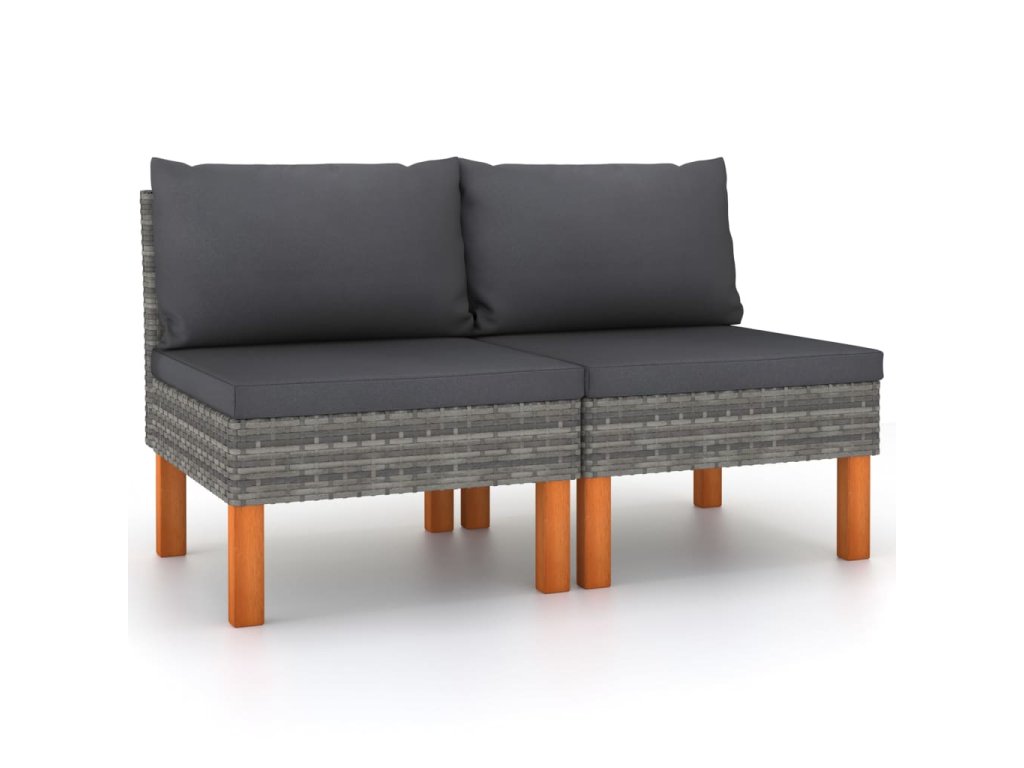 Středové sedačky 2 ks polyratan a masivní eukalyptové dřevo 315756