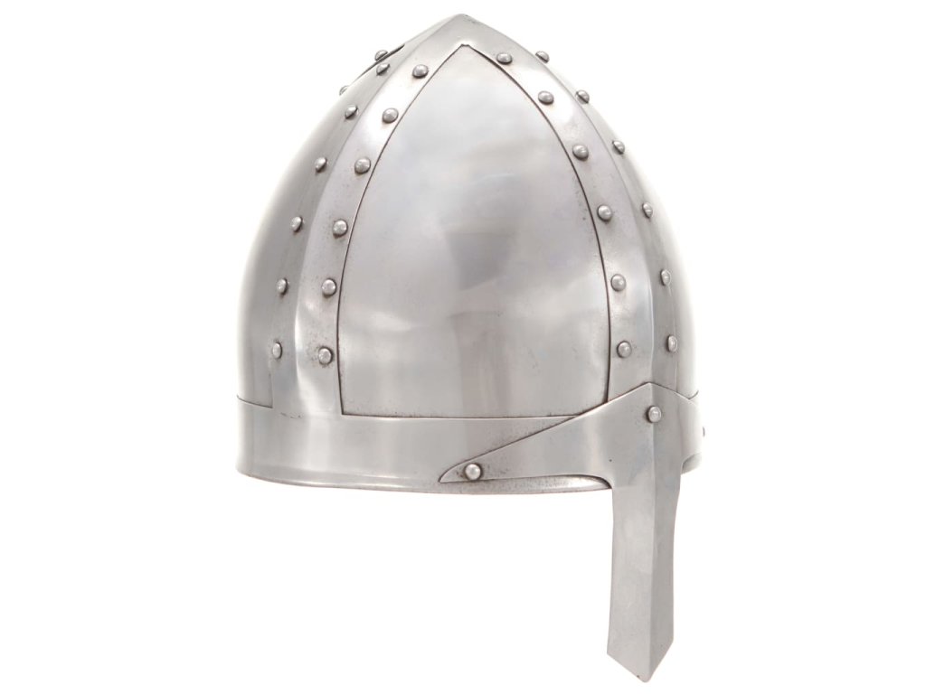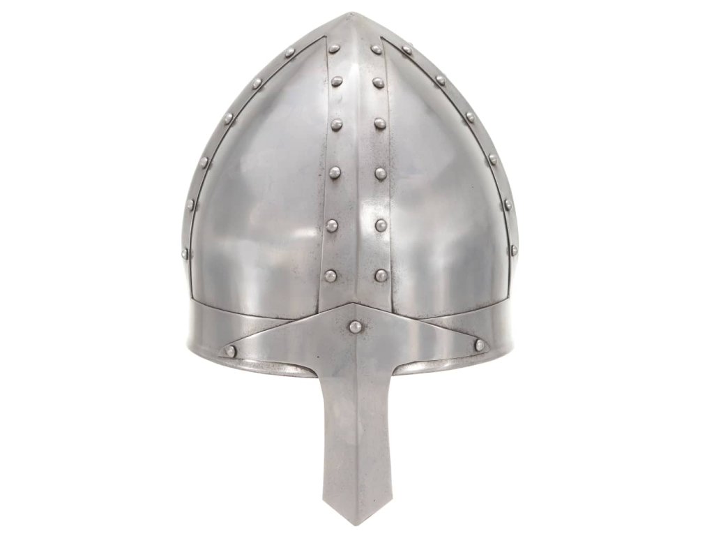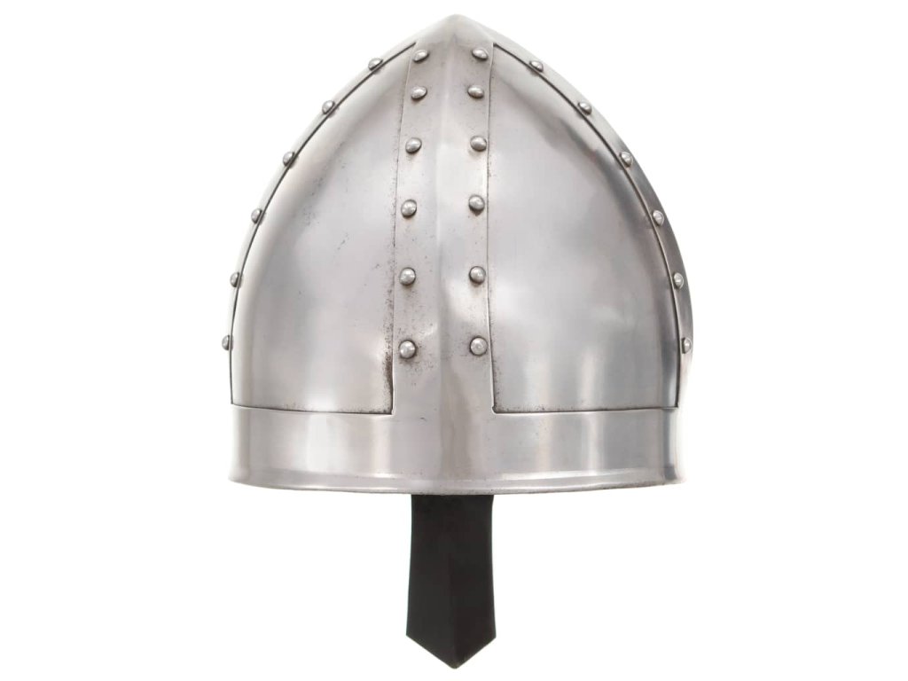 Válečnická helma je přesná replika evropské válečné přilby s nánosníkem. Je zhotovená z oceli 18. Kombinací původního designu s odolným materiálem vznikla působivá přilba, která dokonale doplní vaši stávající válečnickou výbavu. Naše normanská helma s nánosníkem chrání také nos. Přilba je zároveň atraktivním dekorativním doplňkem do interiéru.